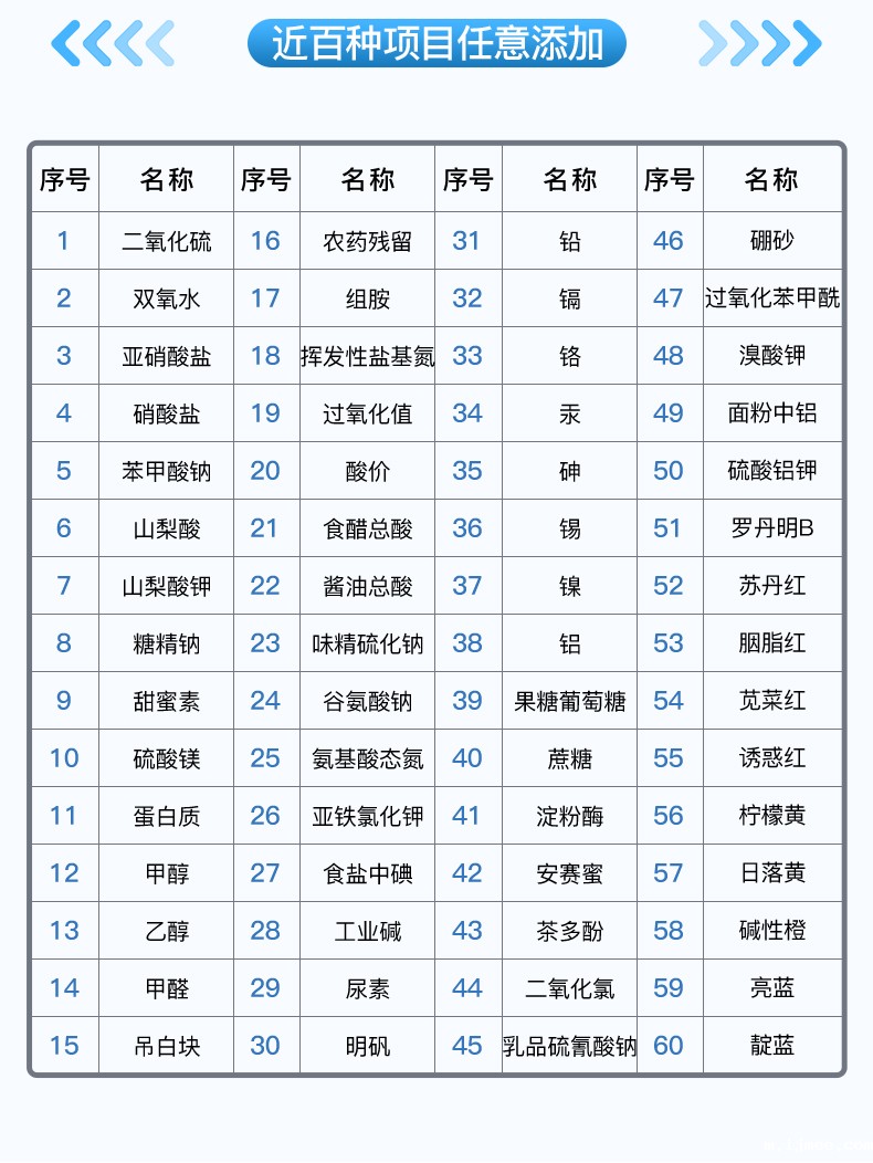 多功能食品安全分析仪 YT-SA04 检测项目: