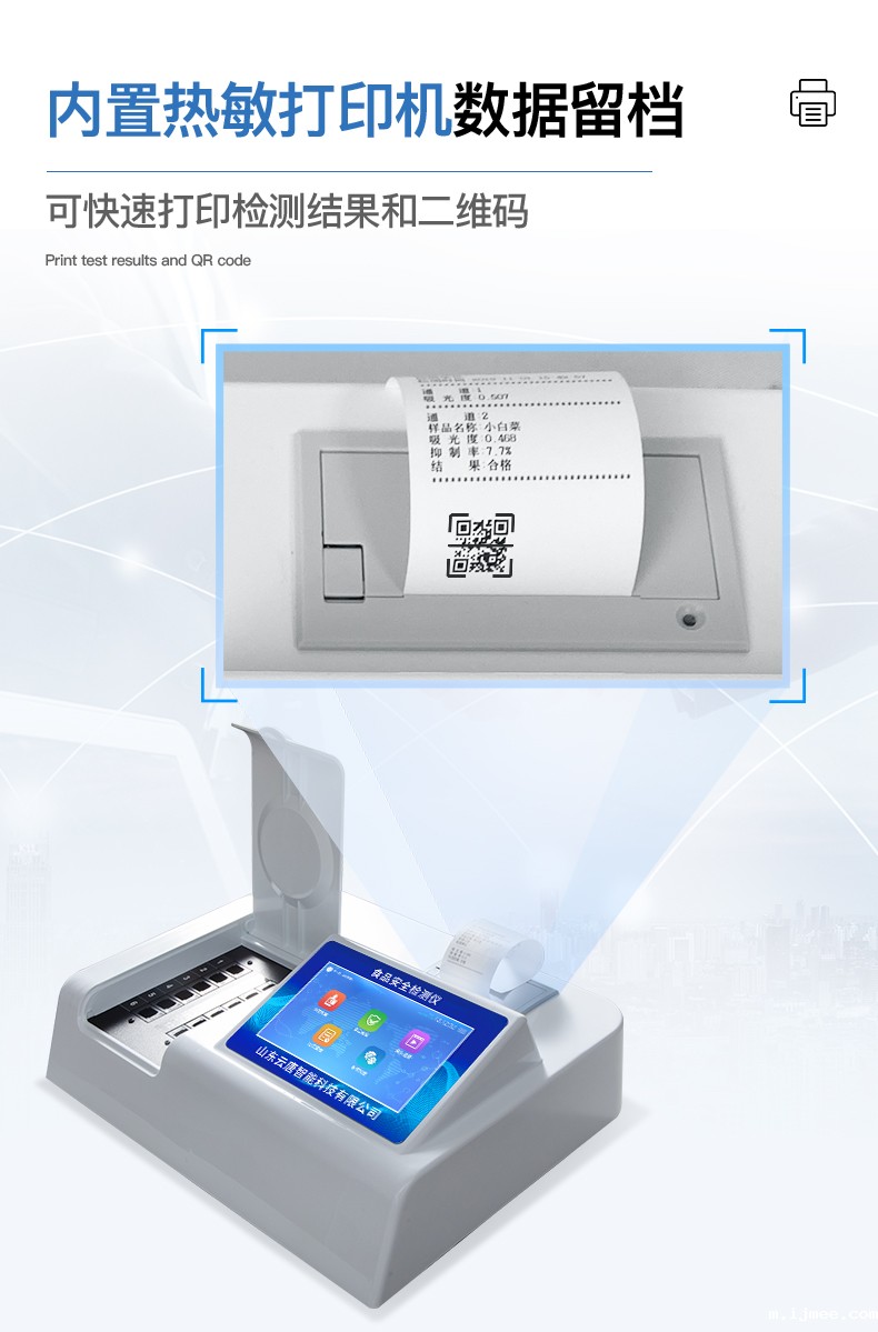 5、配备新一代嵌入式热敏打印机,可选择手动打印或者自动打印,检测完成可自动打印检测报告和二维码。