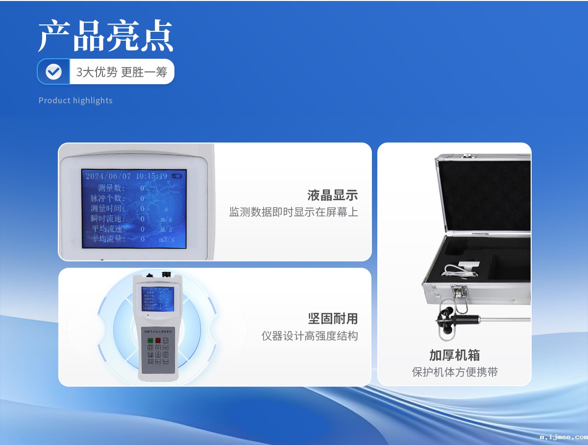 起转速度 :0.03m/s 公式范围 :0.01—4.00m/s(可到5.00m/s) 供电电压:3.3V 测算误差 :≤1.5% 测量深度 :410mm