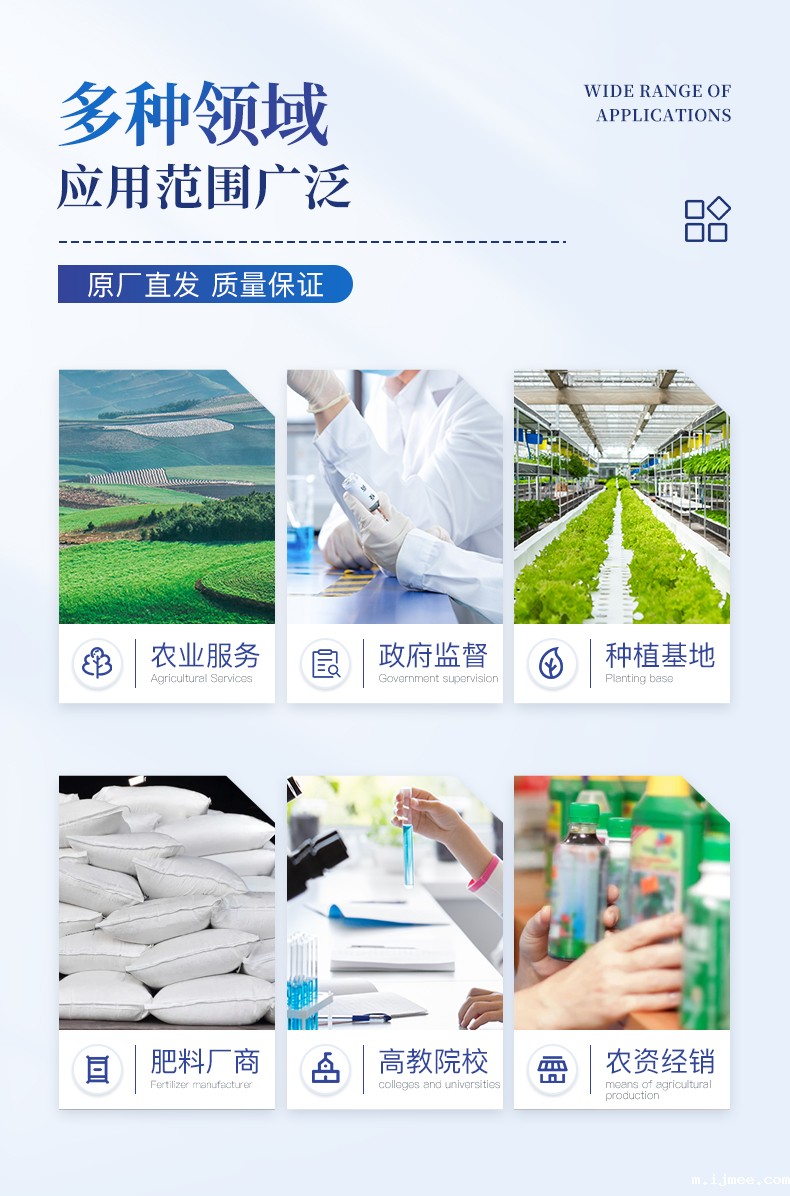配套齐全:该仪器无需用户自配附件,相当于一个小型实验室。适于农业服务部门或农资经销商、合作社、肥料厂商、大种植户测土施肥。